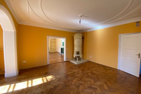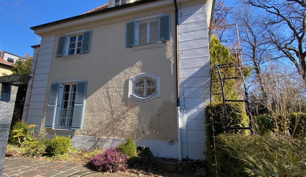 Die Villa wurde in den 20er Jahren errichtet und ist aufwendig mit Stuckdecken, Parkettböden und Jugendstilkachelöfen ausgestattet. Bei einer Renovierung 1974 wurde das Haus durch den Anbau eines separaten Treppenhauses in ein 3-Familienhaus unterteilt. Im Erdgeschoß befindet sich ein großer Vorraum, Wohnzimmer und 2 weitere Zimmer sowie Küche und Badezimmer. Im 1. Obergeschoß befinden sich 4 weitere Zimmer, eine Küche und ein Badezimmer.